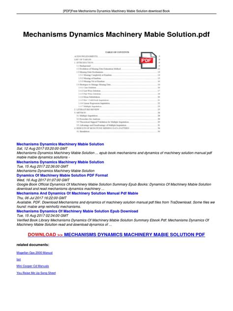 Download MECHANISMS AND DYNAMICS OF MACHINERY SOLUTIONS PDF Open Library